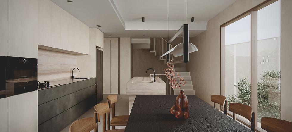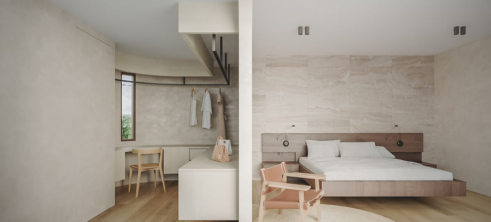 將採光與通風作為優先機能考量,採獨棟六層樓透天格局,獨立一個平面車位。思考到現代生活的便利性,也將電梯納入空間中;各樓層皆配有獨立衛浴,兼顧隱私與方便性。通透的空間配置與體貼的機能,將賦予這座家居空間活力與舒適兼具的特質。